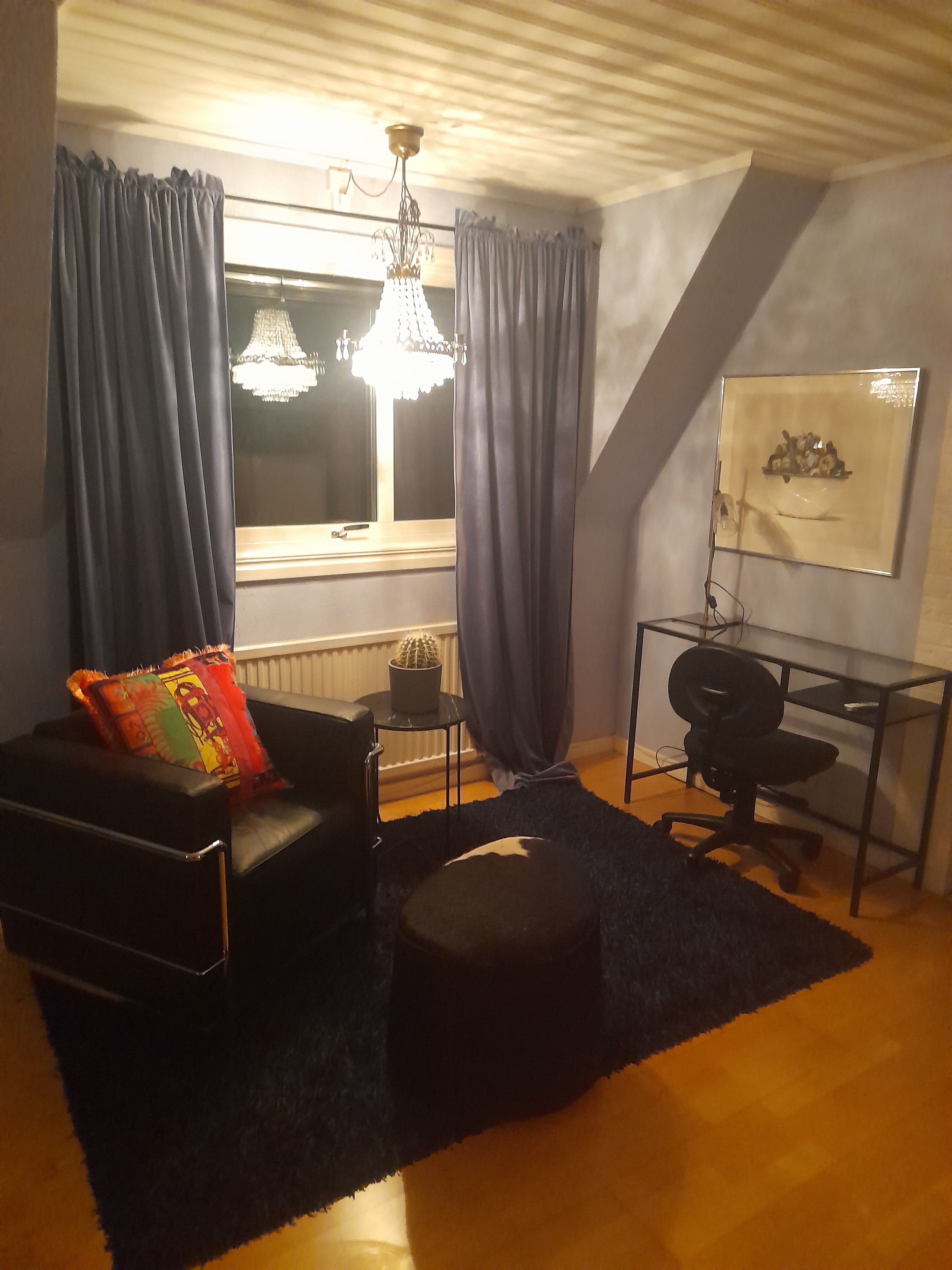Stort fräscht möblerat rum i stor lägenhet centralt Huskvarna att hyra då min nuvarande hyresgäst sen flera år åker hem på sommarlov. Föredrar veckopendlare. Ev kan inflytt ske något tidigare. Samma med utflytt. Vackert möblerat. Sov gott i säng från Hästen. TV, kyl/frys, vattenkokare och micro finns på rummet. Braskamin. TV med chromecast. Sängkläder och handdukar finns. Du röker inte inomhus. Kök och badrum delas med mig. Jag är ofta bortrest. Tillgång till inglasad balkong, trädgård, cykelförråd, parkering och tvättstuga. Månadshyra 4200:- inkl internet Läge nära bussar, service och badplats.