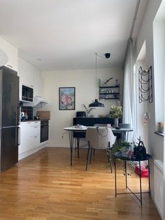 Hej, dottern studerar utomlands och vi letar efter en hyresgäst för en längre tid. Lägenheten ligger högst upp i ljust söderläge med stor balkong. Centralt, lugnt läge mot innergård med nära till affär, gym och restauranger. Ca 10 min promenad till Universitetet. Bastu, grill och lekplats finns i innergården.